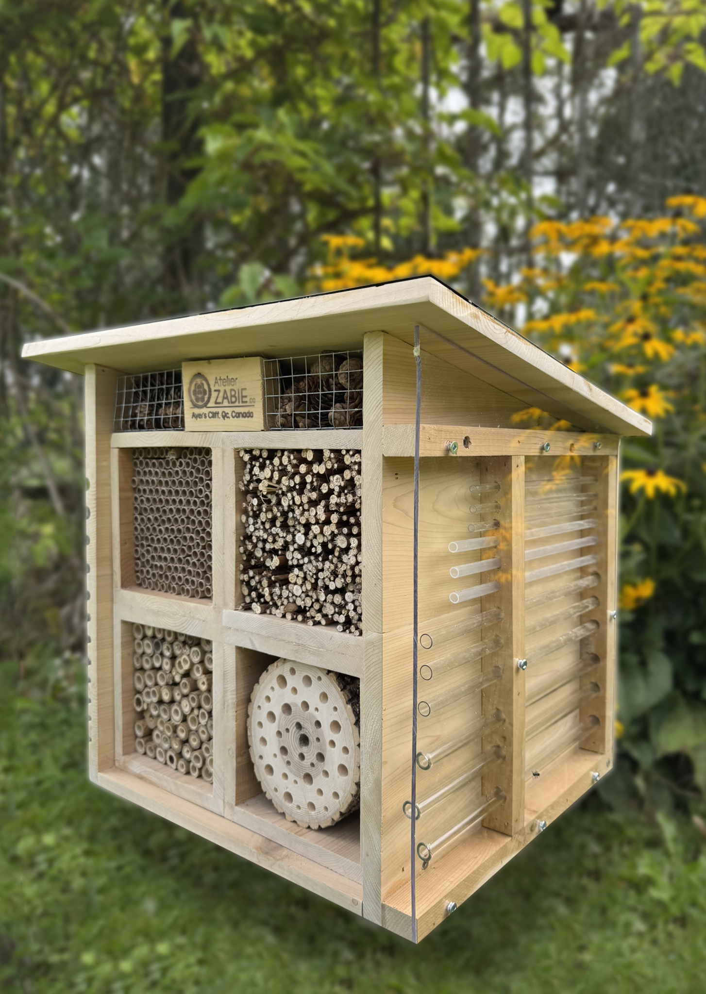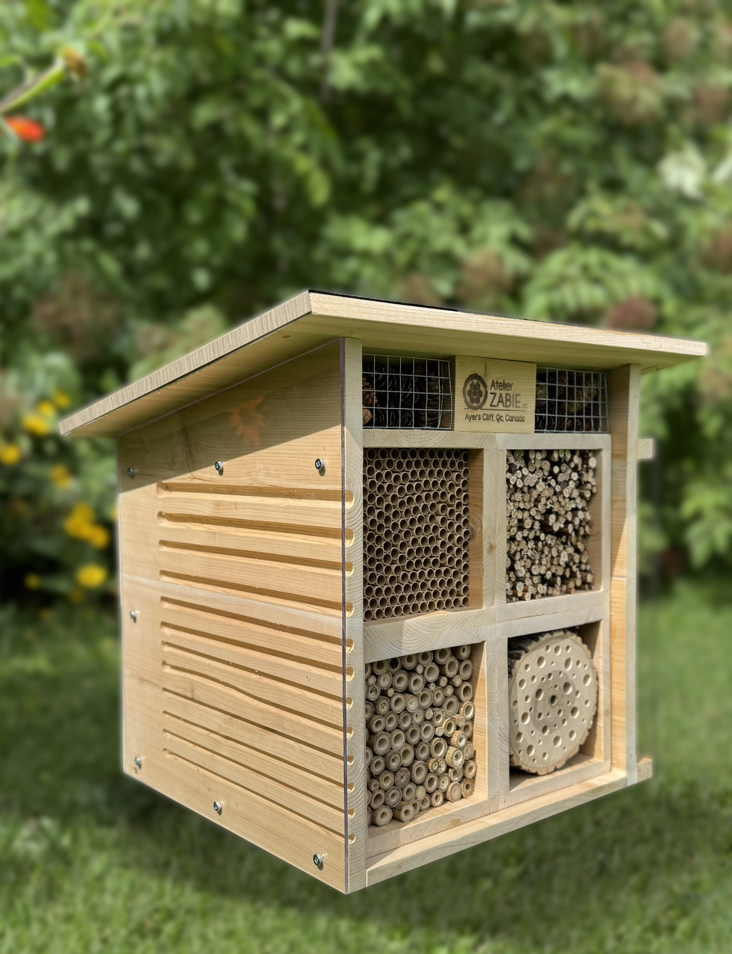 Les hôtels à insectes attirent des abeilles solitaires — des abeilles très pacifiques — mais si leurs nids sont déplacés ou ouverts, elles peuvent se sentir menacées et tenter de se défendre pour protéger leurs œufs.